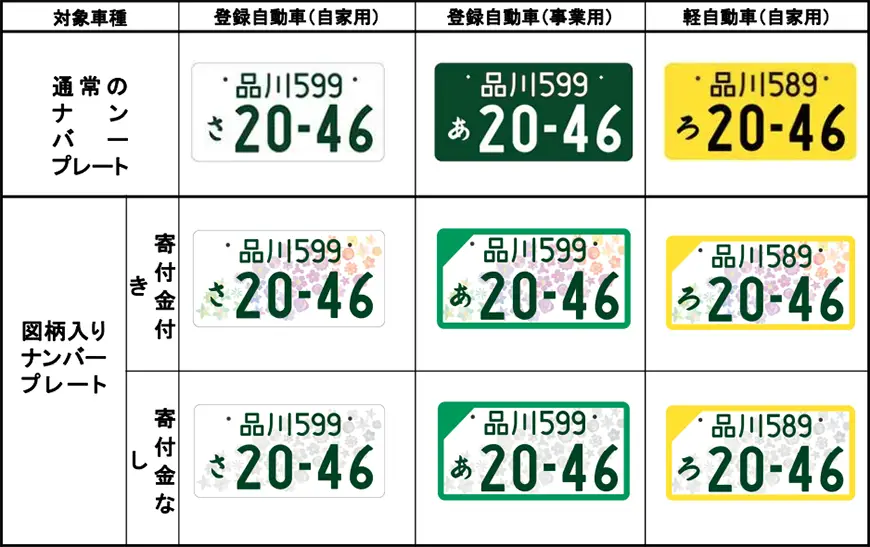 ナンバープレートの背景に花柄が設定されます。寄付金という制度があり、寄付する・しないを選択することで背景がモノクロかカラフルに分かれます。